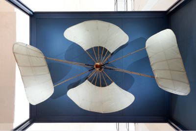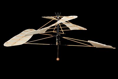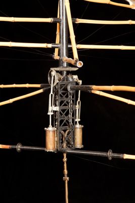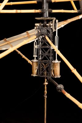 Apparecchio sperimentale costituito da una motrice a vapore e da due eliche ad asse verticale controrotanti, in tela e bambù. La motrice a vapore comprende la caldaia di forma circolare appesa alla parte inferiore della macchina e due cilindri verticali, sorretti da un telaietto a traliccio in metallo. Gli stantuffi dei cilindri sono collegati all'estremità ad un piccolo albero a gomiti che, per mezzo di una trasmissione a coppia conica d'ingranaggio, trasmette la rotazione alle eliche.