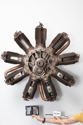 Motore rotativo a 9 cilindri disposti a stella, raffreddato ad aria. I cilindri in acciaio, muniti di alettatura integrale, sono fissati su un carter, pure in acciaio, rotante attorno ad un albero a gomito fisso. Il movimento dell'albero a gomito è agevolato dalla presenza di due cuscinetti a sfere. Ogni cilindro è provvisto di due valvole in testa, azionate ad aste e bilancieri. Il motore è stato sezionato a scopi didattici. Il condotto di alimentazione dal carter al cilindro è stato mantenuto soltanto in tre cilindri.