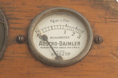 Frammento di cruscotto con manometro Austro-Daimler e magnete Bosch