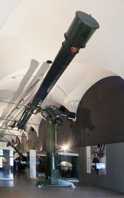 Conosciuto storicamente come telescopio Merz-Repsold, dal nome dei due costruttori tedeschi che lo realizzarono, il primo avendo prodotto la parte ottica mentre il secondo quella meccanica, questo strumento è stato il più grande telescopio rifrattore italiano e uno dei più grandi al mondo. Un record che è destinato a rimanere insuperato dato che, da li a pochi anni, prese il sopravvento la produzione dei telescopi a riflessione, molto più efficienti, potenti e di facile costruzione; la tecnologia dei telescopi a lente venne quindi gradualmente abbandonata.