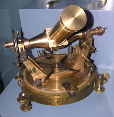 Lo strumento poggia su una base di forma circolare che può essere resa perfettamente orizzontale grazie a tre viti calanti che costituiscono i piedi di appoggio di tutto lo strumento. Sulla base è posizionato il cerchio orizzontale di misura.