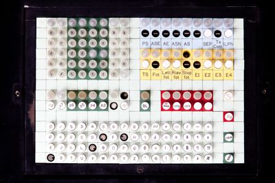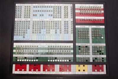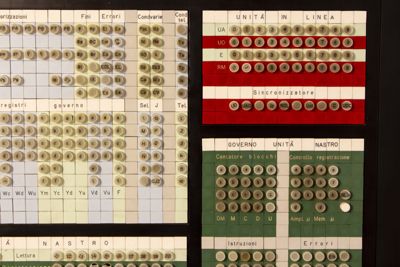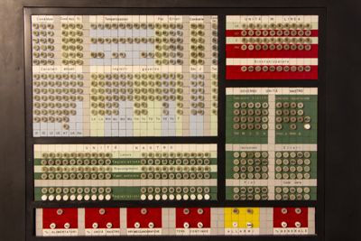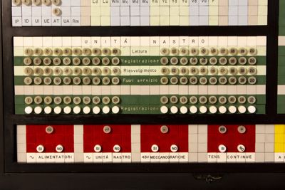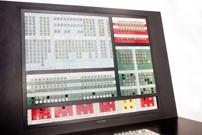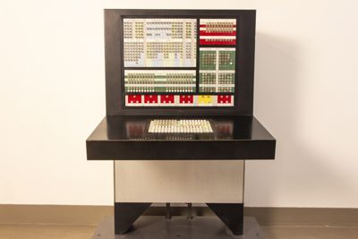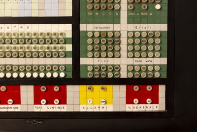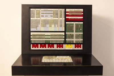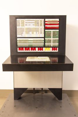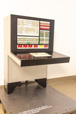 La console, o tavolo di comando come veniva chiamata, è costituita da una tastiera alfanumerica posta su una mensola sporgente e un pannello verticale; sulla console si notano numerosi pulsanti e spie di forma circolare e retroilluminati.