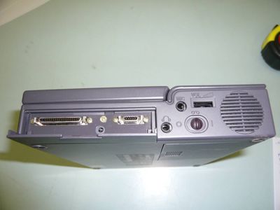 Sul lato destro si hanno uno sportello che protegge una porta seriale RS232 e una parallela (anche per floppy drive esterno da 3,5" e 1,44MB)e un tasto di reset, un connettore per microfono esterno, uno per le cuffie, una rotella per la regolazione del volume, un interruttore per l'inserimento del registratore, una griglia a protezione dell'altoparlante interno.