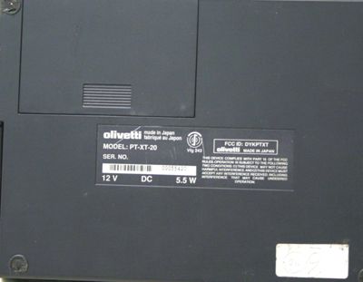 olivetti made in Japan fabriqué au Japan/ MODEL: PT-XT-20/ SER. NO. 00055420/ 12V DC 5,5W/ FCC ID: DYK PTXT/olivetti MADE IN JAPAN (commerciale/ documentaria)