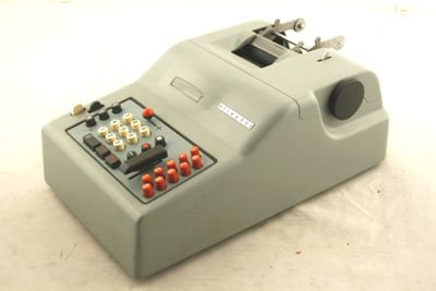 Calcolatrice elettromeccanica stampante con chassis in metallo verniciato di grigio. La macchina presenta una tastiera ridotta su tre file, dotata di tre diversi tasti per l'impostazione delle decine, centinaia e migliaia; accanto alla tastiera è posta una seconda tastiera ridotta, composta da dieci tasti rossi disposti su due colonne. Una leva con impugnatura rossa serve per impostare la divisione.