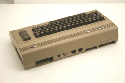 Sul retro si trova uno slot per il collegamento di espansioni (connettore per cartuccia), un connettore TV, le uscite video e audio, una porta seriale per floppy disk singolo da 5.25" o stampante, un interfaccia per il collegamento di un registratore a cassette Datasette e una user port (programmabile di input/output o connettore per cartucce ad inserimento come l'interfaccia RS232.