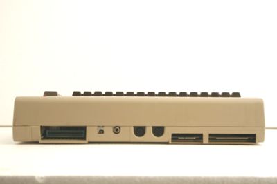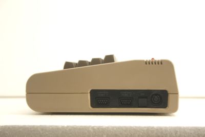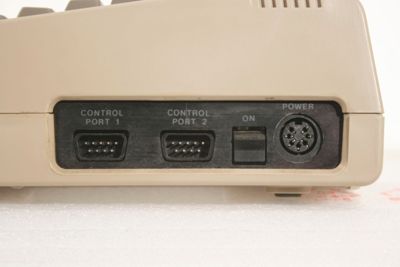Sul lato destro si trovano due porte (control 1 e 2) per il comando giochi (paddle, joystick, penna ottica), l'interruttore di accensione e il connettore per l'alimentazione.