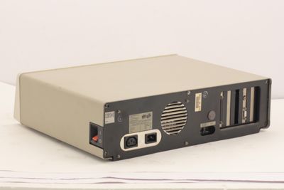 Scatola metallica parallelepipeda (case) contenente i circuiti e i dispositivi che costiyuiscono il computer. Sul fronte del case è posta una maschera rastremata verso l'alto, in plastica chiara che presenta delle feritoie per l'aerazione nella parte bassa, da un lato, e, dalla zona centrale in poi, un'apertura in cui si affacciano i due floppy driver da 5¼". Sul retro, da una maschera metallica, si scorgono le prese di alimentazione in ingresso per il computer e in uscita per il monitor, una apertura circolare con lamelline metalliche orizzontali per la ventilazione, due prese per la connessione a memorie a nastro e alla tastiera e un'apertura con varie feritoie che danno accesso ai connettori di schede accessorie del computer (o slot di espansione; sono 5, 2 occupati da schede con connettori seriale e RCA su una e parallelo sull'altra, e altri 3 vuoti). Su di un lato del case, posteriormente, è posto l'interruttore di accensione/spegnimento consistente in una leva in plastica rossa con ai lati i simboli " | " e " O ".