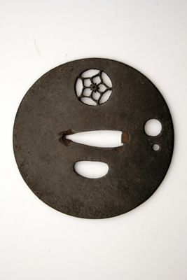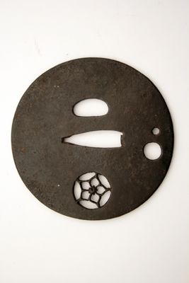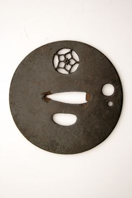 Elsa di spada giapponese di forma tonda. Sono presenti il foro centrale per il codolo (nakagoana) e il foro di sinistra (kozuka hitsuana), e i due piccoli fori per il cordino (udenukiana). La decorazione, realizzata a traforo, rappresenta un fiore di pruno stilizzato.