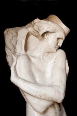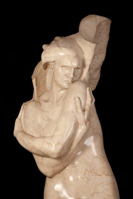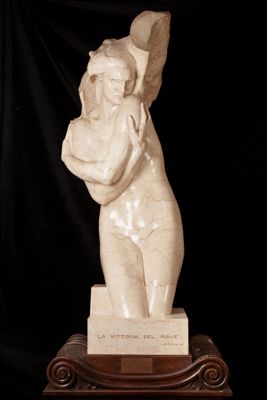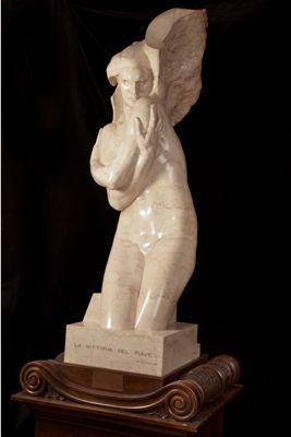 Statua in marmo di dimensioni naturali di Arrigo Minerbi, raffigurante una figura femminile alata nuda, personificazione della Vittoria, tagliata all'altezza delle ginocchia.
