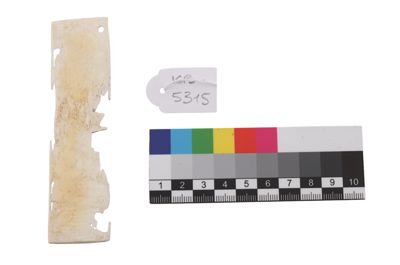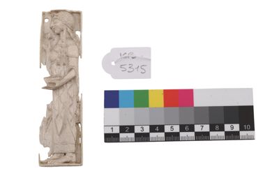Il manufatto si presenta come una placca in osso in stile etrusco ad imitazione eburnea e dell'iconografia antica: qui è una figura femminile. Probabilmente il manufatto venne realizzato tra fine 800 e inizio 900.