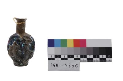 Balsamario in vetro soffiato a stampo con doppia testa di Medusa. III-IV secolo d.C. ?