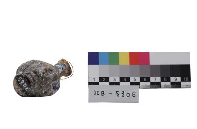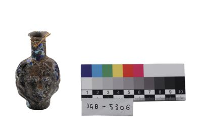 Balsamario in vetro soffiato a stampo con doppia testa di medusa. III-IV d.C.(?)