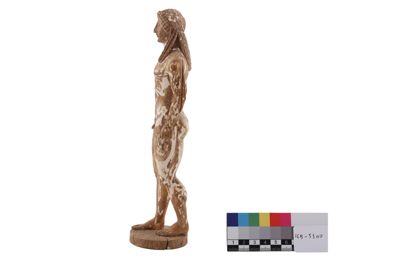ite: statuetta in osso in stile etrusco, rappresentante un uomo che cammina.