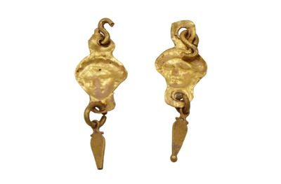 Orecchini in oro in stile etrusco-romano con teste femminili