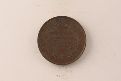 Medaglia di provenienza toscana, ascrivibile al regno di Leopoldo II Granduca di Toscana (1824-1859) e già attesta verosimilmente in occasione della Pubblica esposizione dei prodotti naturali e industriali della Toscana, tenutasi a Firenze nel novembre 1850, come testimonia il Rapporto redatto in quell'occasione, in cui si fa menzione della premiazione di alcune imprese tessili con una medaglia corrispondente in legende e descrizione al presente esemplare (cfr. Rapporto generale della Pubblica esposizione, 1850, p. 194). La medaglia si inserisce a livello storico nel contesto degli incentivi promossi dal governo di Leopoldo II in Toscana per favorire l'industrializzazione del territorio, operazione di cui la Esposizione di Firenze del 1850 faceva parte.
