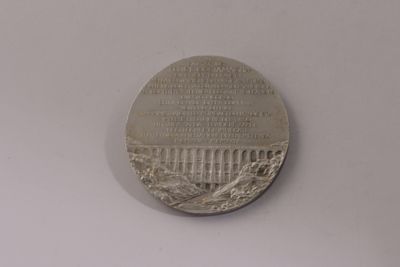 Medaglia commemorante gli ingegneri Felice Costamagna e Giulio Dolcetta, responsabili della costruzione della diga sul Tirso in Sardegna, inaugurata nel 1924. Sul recto presenta un busto di tre quarti di Giulio Dolcetta, sul verso una veduta della diga.