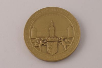Medaglia coniata dall'istituto Stefano Johnson di Milano per celebrare i restauri del Castello Sforzesco di Milano ad opera dell'architetto e storico dell'Arte Luca Beltrami (1854-1933) che ne operò un'imponente restauro in stile particolarmente distruttivo e invasivo con l'intento di riportarlo alla facies sforzesca.