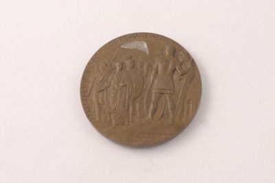 Medaglia coniata dalla Regia Zecca di Roma nel 1930 per celebrare il bimillenario della nascita del poeta romano d'età augustea Publio Virgilio Marone (70 a.C. - 19 a.C.), autore delle Bucoliche, Georgiche e dell'Eneide. La medaglia si colloca storicamente nella propaganda di richiamo alla romanità tipica del regime fascista che tendeva ad esaltare particolarmente la fase alto imperiale dell'epoca romana come un momento di splendore per la storia d'Italia e precursore di un dominio culturale e politico sul mondo che il regime pretendeva di avere. La medaglia raffigura al recto immagini bucoliche e di vita agreste tratte dalle opere di Virgilio e una allegoria di Roma nell'atto di allattare i gemelli Romolo e Remolo. Al verso viene rappresentata una scena tratta dall'Eneide in cui lo spirito del defunto padre di Enea, Anchise, mostra al guerriero troiano la stirpe futura che da lui verrà e che porterà alla grandezza di Roma e ad Augusto. La raffigurazione di Augusto al verso della medaglia, in mezzo alla processione dei futuri uomini illustri di Roma mostrati ad Enea, permise a Romagnoli di inserire nella scena anche un littore con fascio littorio, simbolo che anticamente accompagnava i magistrati nell'antica Roma ma che viene in questo caso posto in forte evidenza per richiamare il regime fascista italiano.