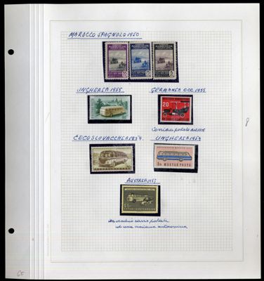 Album di francobolli "Mezzi di trasporto" nella documentazione filatelica con n.412 francobolli