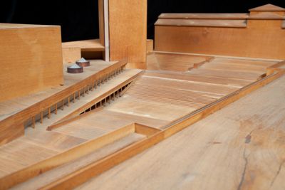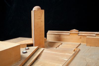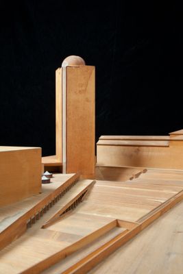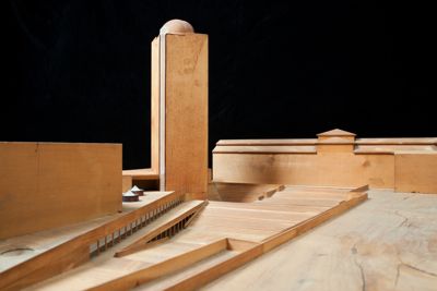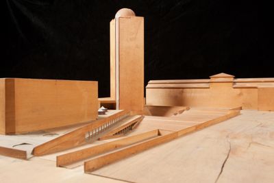 Plastico architettonico del progetto di sviluppo dell'Ente (MNST), 1984(?). Vista frontale da via Olona, Milano.