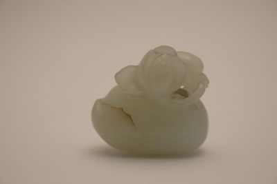 Questo piccolo oggetto doveva fare coppia con uno simile raffigurante un'anatra mandarina con il frutto del loto nel becco. Il significato dell'immagine così formata è d'auspicio perché la coppia abbia figli maschi.