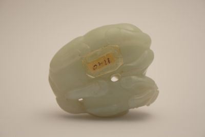 La coppia piccolo - adulto, che si può incontrare anche in altri manufatti di questa collezione, ha lo scopo di raddoppiare e rafforzare il potere di buon auspicio. In questo caso l'oggetto poteva essere un dono per una giovane coppia e per le piccole dimensioni poteva fungere da ferma carte. Le linee curve e delicate, e l'aspetto tondeggiante della pietra sono tipiche di uno stile in voga durante il periodo Ming.