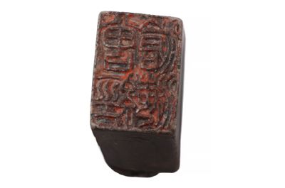 I sigilli compaiono in Cina almeno dal tardo periodo Zhou per scopi ufficiali, artistici, letterari, commerciali e personali. Comunemente usati al posto della firma, i sigilli venivano apposti su documenti ufficiali ed erano fatti con materiale che potesse essere intagliato o creato a stampo come bronzo, argento, pietra, corno, legno. Le dimensioni erano molto varie e passavano da quelle grandi dei sigilli imperiali a quelle piccole delle pietre personali come questa. Si usano a tutt'oggi con un inchiostro rosso in pasta.