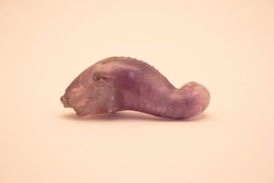 Scultura in ametista raffigurante una carpa. Potrebbe trattarsi di una bottiglietta da fiuto.
