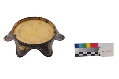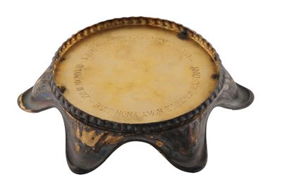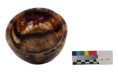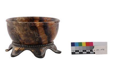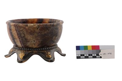 Tazza in quarzo ciprino ed ametista con supporto in metallo in stile d'epoca romana (cm. 15*7).