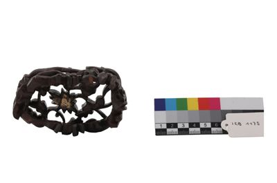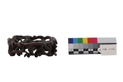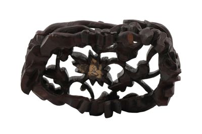 Base originale in legno intagliato per la scultura in cristallo "Montagna degli immortali" (Inv. n° IGB-1174).