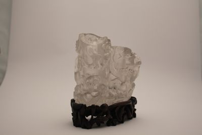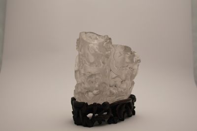 Il cristallo era apprezzato in Cina per la purezza e trasparenza della pietra. Queste qualità, associate all'onore, erano di ispirazione per il funzionario-letterato, i poeti e gli artisti che miravano alla perfezione e alla sobrietà. I motivi animali e vegetali qui rappresentati sono fra i più comuni nell'arte cinese e tutti simboleggiano longevità. Solitamente la gru e il pino si ritrovano associati al cervo, alla tartaruga, o alla pietra. Gru e pino formano il detto "song he tong chun", un augurio di lunga vita dedicato ai novelli sposi, mentre il cervo e la gru per assonanza rappresentano le sei direzioni dell'universo "liu - he".
