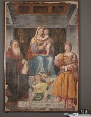 Affresco strappato raffigurante la Madonna con Bambino, Sant'Antonio Abate, Santa Barbara e angelo musicante. Proveniente dalla Chiesa di Santa Maria di Brera a Milano, è in deposito dalla Pinacoteca di Brera.