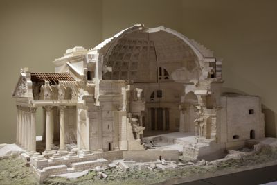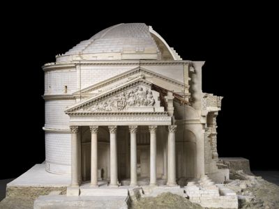 Il modello può essere considerato formato da due componenti: la base e la sovrastruttura formata a sua volta dal protiro e dalla rotonda. La rappresentazione, pur essendo stata concepita a fini scientifici, lo stile adottato per concepire il modello è romantico,come una rovina antica.