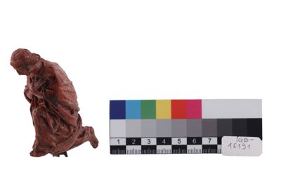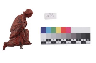 Modello in cera raffigurante un personaggio in ginocchio,