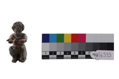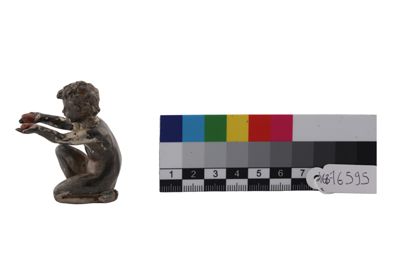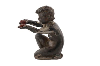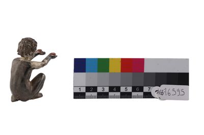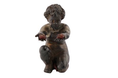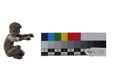 Fusione in argento raffigurante bambino seduto,