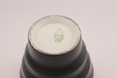 Vaso rastremato a profilo esterno ondulato, in ceramica smaltata.