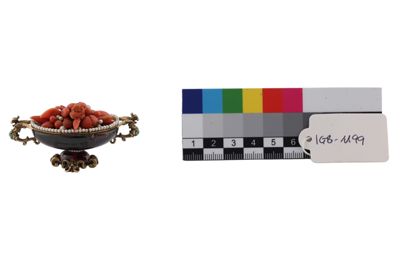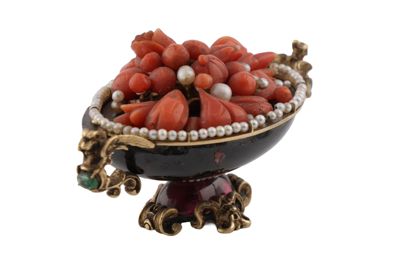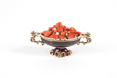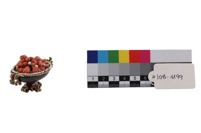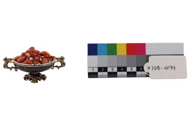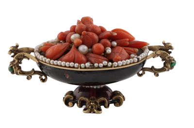 coppetta con coralli in forma di frutta e manici ad arpiedel soggetto