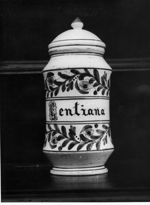 Il decoro è molto comune nelle manifatture venete a partire già dai primi anni del XVIII secolo. Questo esemplare si distingue dalle produzioni tradizionali introducendo una nuova forma più lineare, ma pur sempre legata alla "comoda" e utile forma ad albarello.