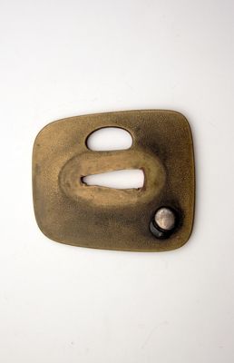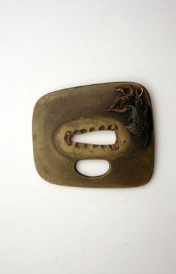 Elsa di spada giapponese di forma aori, "a ventaglio", tipicamente usata per spade corte. Sono presenti il foro centrale per il codolo (nakagoana) e il foro di sinistra (kozuka hitsuana).