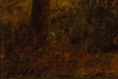 Dipinto di piccole dimensioni di Giuseppe De Nittis, raffigurante lo scorcio di un bosco, con tre tronchi di alberi in primo piano.