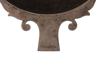 È visibile su un manico l'iscrizione in greco "ΠΛANHTA". Francesco Mauro e la moglie aquistarano molti argenti in stile antichizzante da questo argentiere, citato più volte nell'elenco topografico della loro collezione, contestuale alla donazione al Museo.