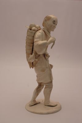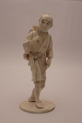 Statuetta, okimono (letteralmente: oggetto da posare), in avorio, raffigurante un uomo con un falcetto in mano che ritorna soddisfatto da una giornata di lavoro con la cesta di vimini sulle spalle piena di cachi, altri frutti e vegetali. La statuetta poggia su un piedistallo sagomato che rappresenta il cammino. L'uomo è raffigurato a piedi nudi, con la fronte tradizionalmente rasata e i capelli raccolti all'indietro, e indossa un giacchetto e dei gambali.