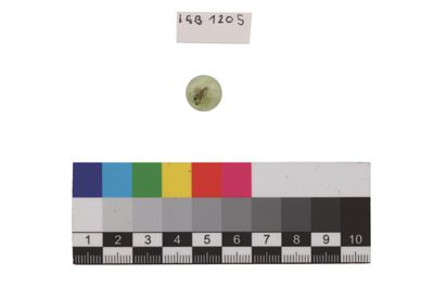 Campione di prehnite tagliata e lucidata a sfera, colore verde, località di provenienza: Gabbia di Val di Fassa.