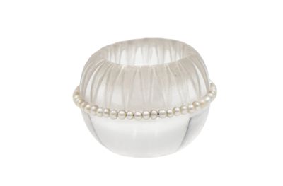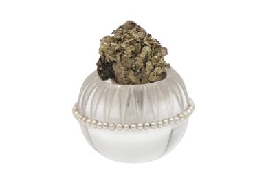 Coppetta in quarzo bianco con filo di perle e minerale di oro nativo