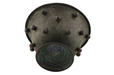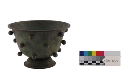 Il manufatto si presenta come un vaso in bronzo di medie dimensioni: qui รจ una decorazione a sfere che ne caratterizza la pancia.