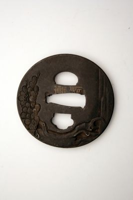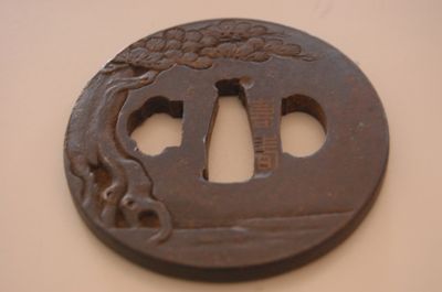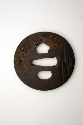 Elsa di spada giapponese di forma tonda, con i tre fori canonici, quello centrale (nakagoana) per il codolo, il foro di sinistra (kozuka hitsuana) per il coltellino, e quello di destra (kogai hitsuana) per lo spillone. Vi era rappresentato un cavallo sotto un albero di pino. La decorazione a intarsio di placca metallica è andata persa e ha lasciato la sola sagoma del cavallo.