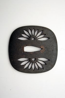 Elsa di spada giapponese di forma ovale con bordo leggermente rialzato. La decorazione, a traforo, rappresenta petali di crisantemo. La superficie è stata leggermente incisa con un motivo di raggi (yasurime) sottili che partono dal centro dell'elsa.