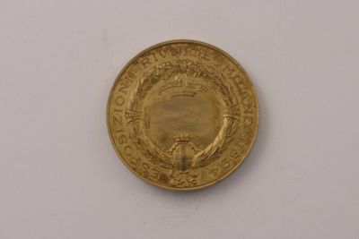 Medaglia in metallo dorato commemorante la Prima Esposizione Internazionale Operaia nel contesto delle Esposizioni Riunite di Milano del 1894. Sul recto presenta un globo terrestre, con stella raggiante sulla città di Milano, con quattro putti nudi, volanti, reggenti una corona d'alloro, squadra e compasso, savadanaio e libro. Sul verso presenta una corona d'alloro legata da nastri con iscrizioni e lo stemma coronato del comune di Milano.