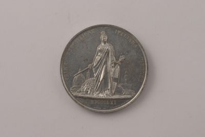 Medaglia coniata per celebrare l'Esposizione nazionale di Firenze del 1861, prima esposizione nazionale italiana, tenutasi dal 15 settembre all'8 dicembre 1861. Il Regno d'Italia unitario era stato proclamato giusto in quell'anno, il 17 marzo 1861, e l'iniziativa ebbe il carattere di unificare il paese anche dal punto di vista delle attività industriali e manifatturiere. Analoghe iniziative erano già state sostenute dai singoli Stati pre-unitari italiani, incluso il Regno di Piemonte e Sardegna, ma l'Esposizione di Firenze fu la prima Esposizione italiana unitaria. La città avrebbe assunto un ruolo importante nel nuovo Stato, venendo elevata a capitale d'Italia nel 1865. L'Esposizione, come altre iniziative analoghe dell'epoca, si colloca nel contesto della promozione dello sviluppo industriale e manifatturiero, attraverso esposizioni di prodotti d'industria e manifattura.